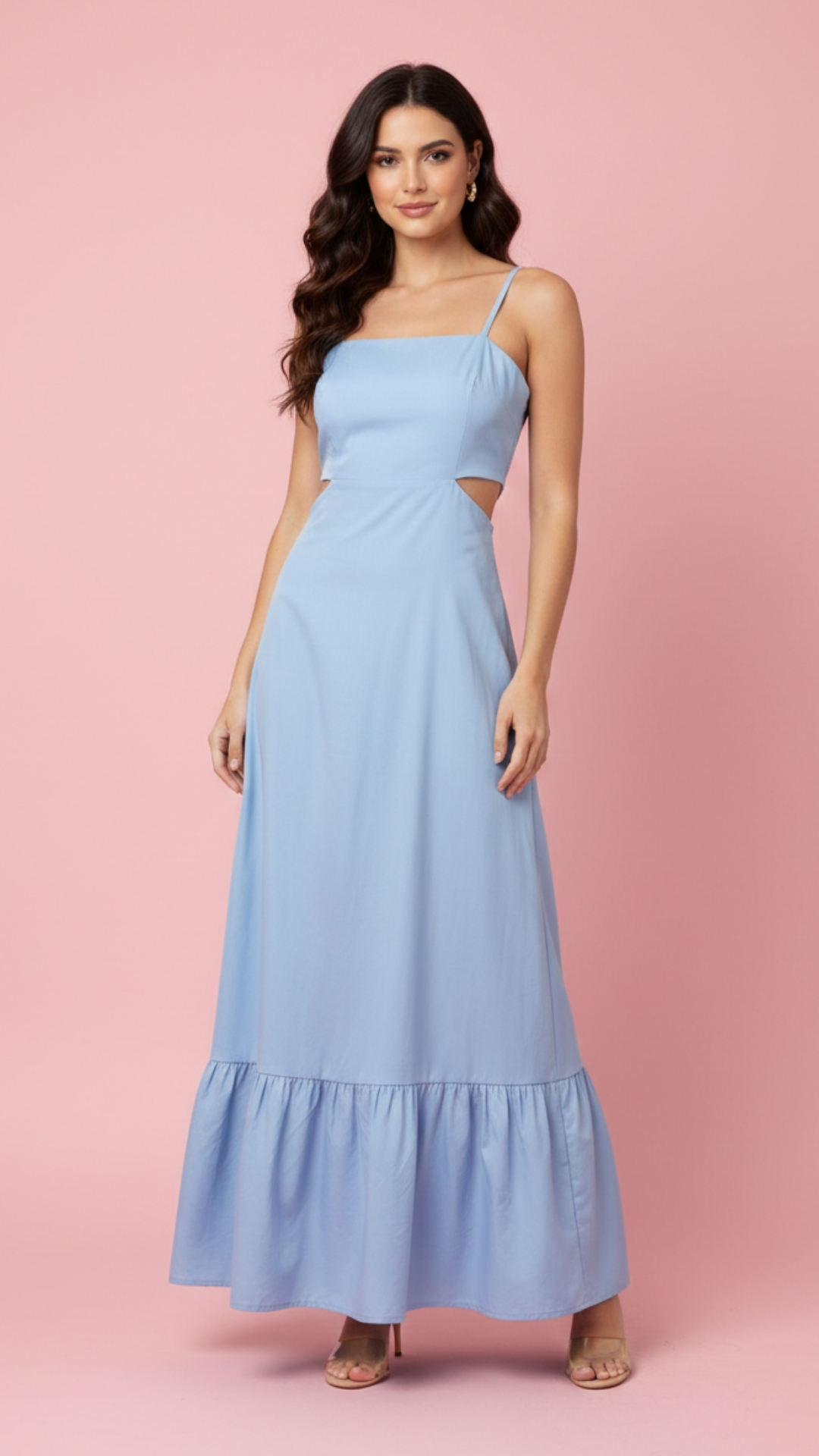 VESTIDO LARGO EN TAFETA AZUL BABY  REF. VL25207L-802TFSAZ