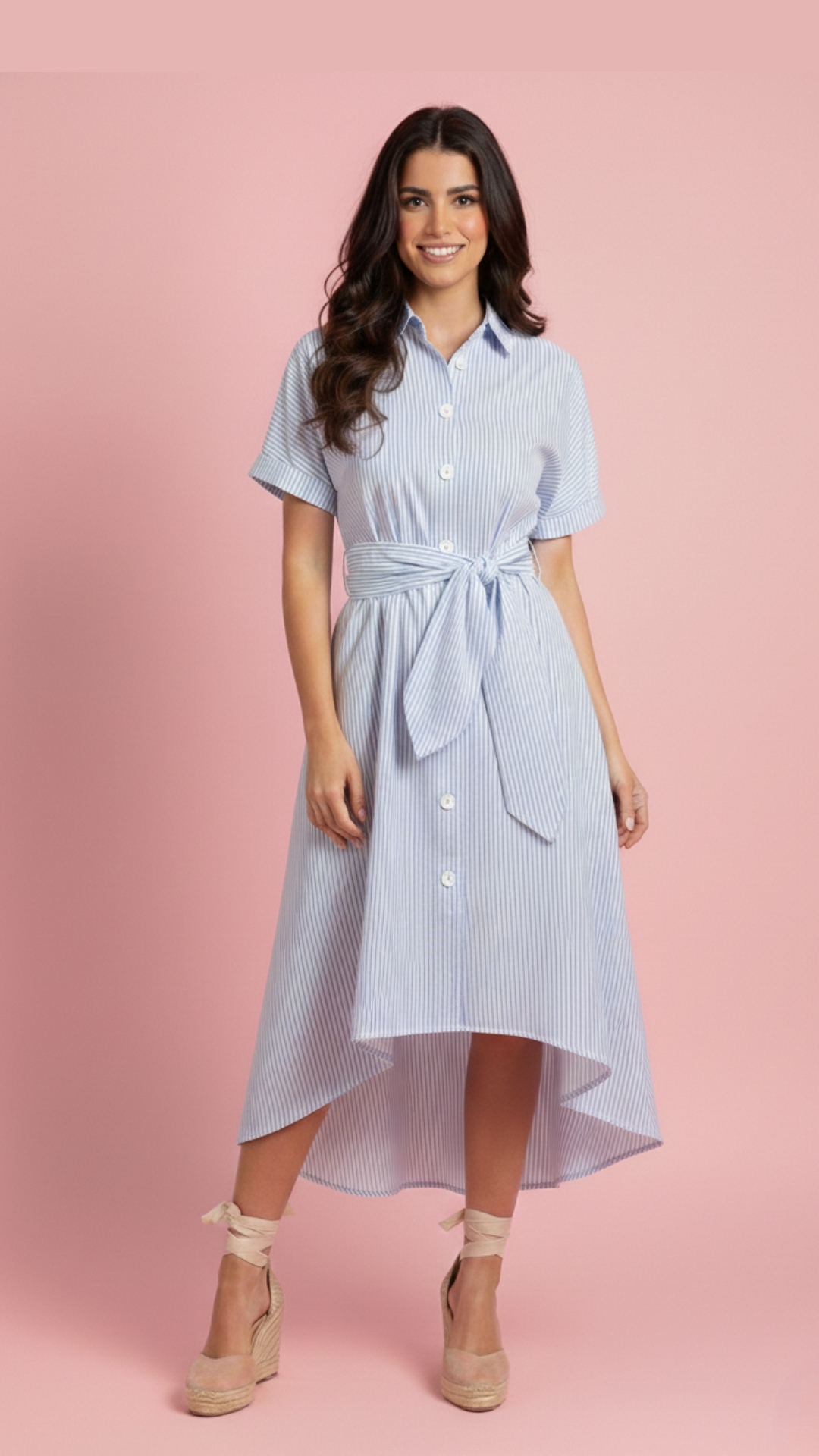 VESTIDO LARGO DE DAMA CAMISERO MANGA CORTA EN POPELINA REF. VM22204M-729POUNIV31